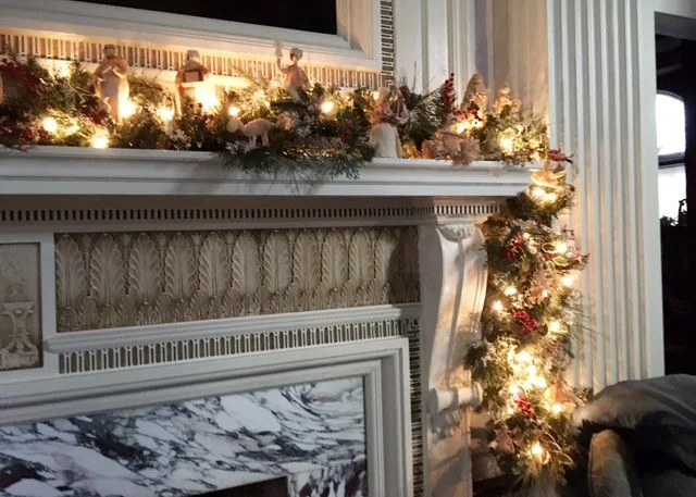 A winter wonderland adorns the mantle in the Library at Monocacy Manor.