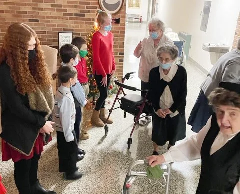 Janice Briggs, associate and former employee, joins the Sisters at Monocacy Manor in singing carols on Christmas Day. Janice moved to Florida in January to be near her family there.