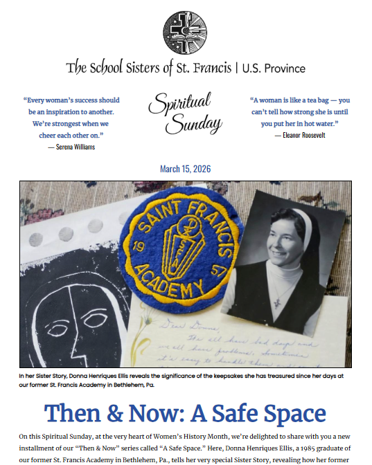 On frequent Sundays throughout the year, our Sisters share anecdotes and spiritual tidings with our families, friends, alumnae and benefactors. We hope these messages help to deepen your sense of solace. If you’ve missed one of our messages or wish to share past editions with someone else, please choose from the archived listings below. If you are not currently receiving our messages via email, please click the button below to add your name to our email list.